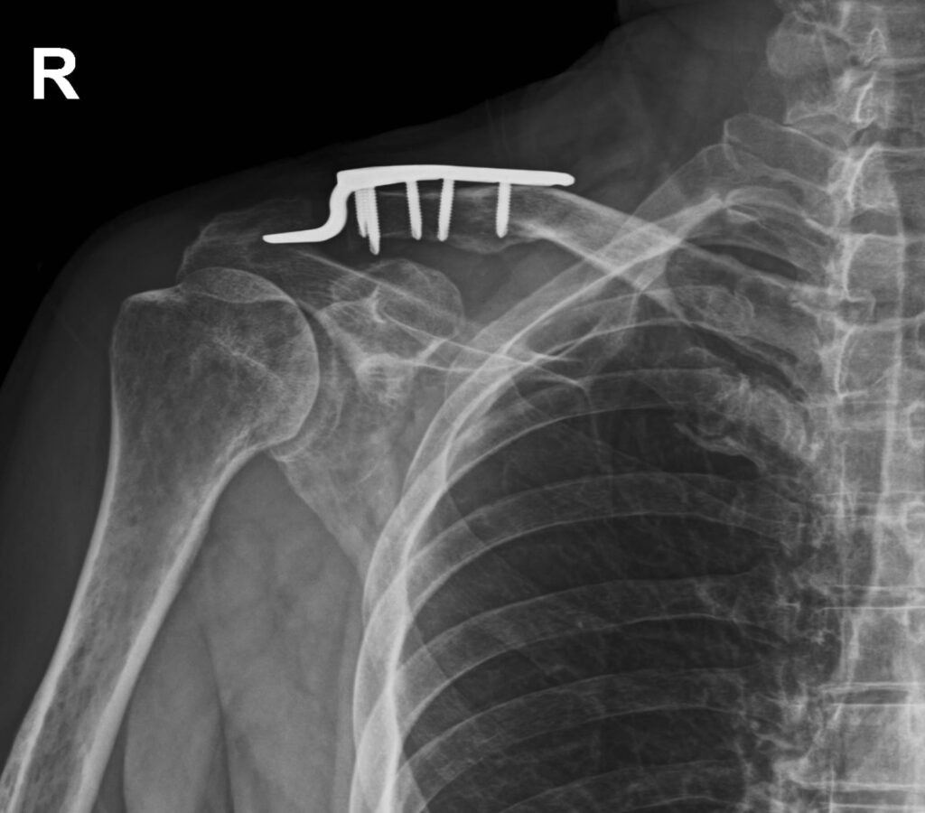 Over a rehabilitation period of approximately four months, shoulder function was restored to approximately 90% of the pre-injury level. At the final stage of rehabilitation, surgical hardware removal was performed to facilitate full functional recovery of the shoulder joint. The patient subsequently followed a highly specific, progressive active rehabilitation protocol aimed at optimizing neuromuscular control and enabling a safe return to sport.